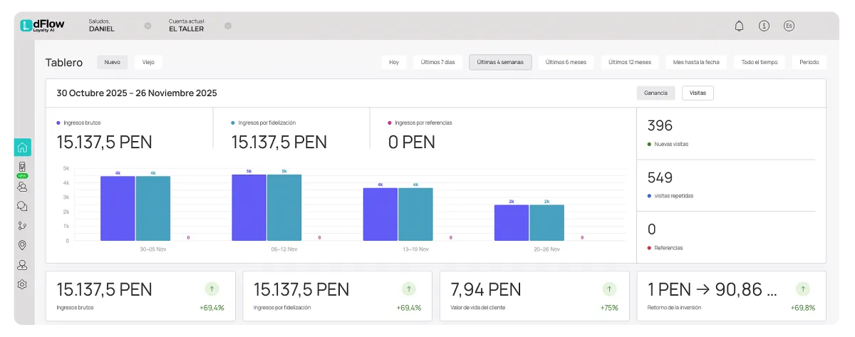 Fidelizalos con dFlow Loyalty AI el sistema inteligente de recompensas que aumenta tus ventas, tus visitas y tu rentabilidad.